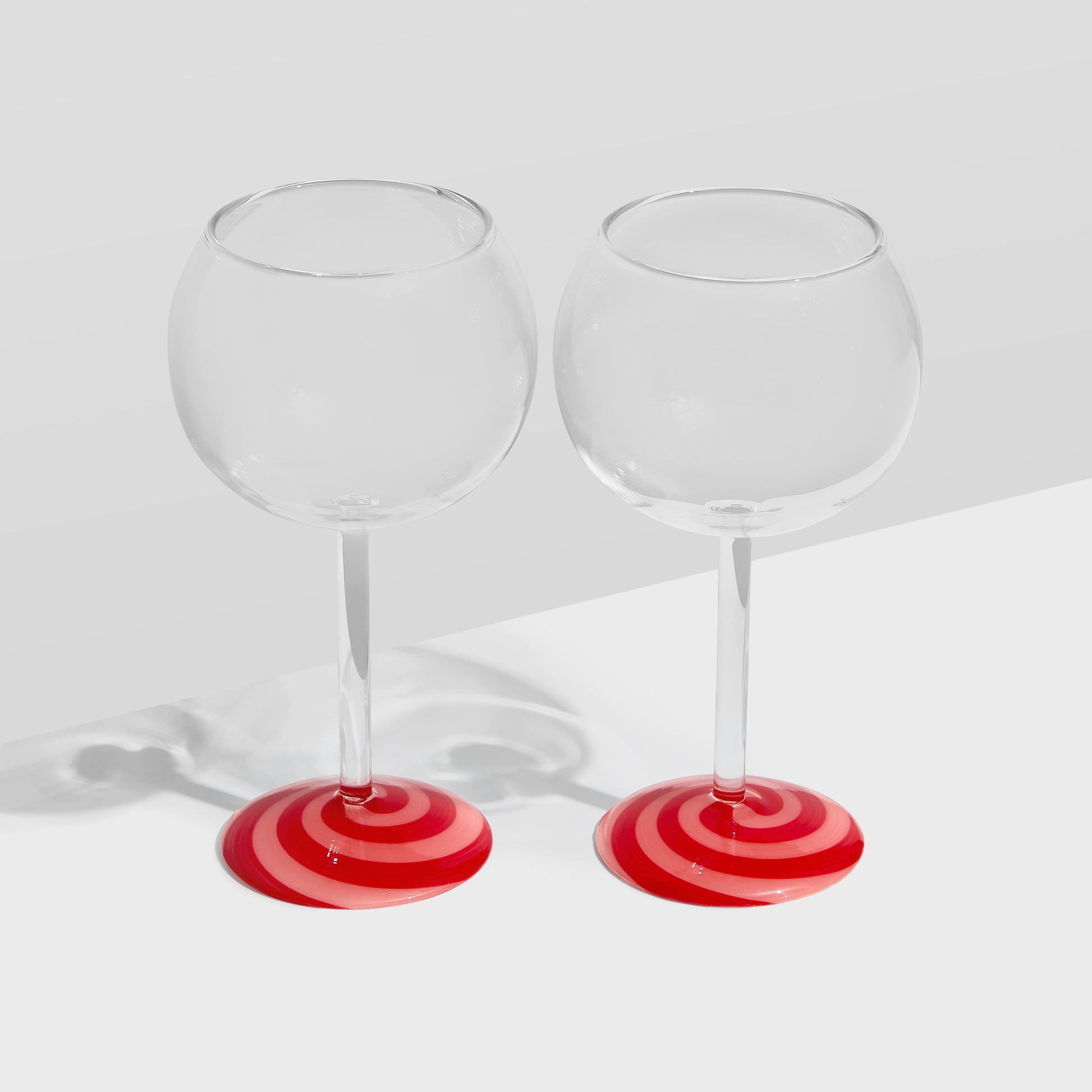 TWO X SWIRL WINE GLASSES - RED/PINK